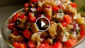 Лёгкий в приготовлении салат из запечённых баклажан.