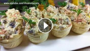 Закуска в тарталетках на любой праздничный стол, получается сочная, сытная и очень вкусная. Готовится легко и просто. Попробуйте приготовить!