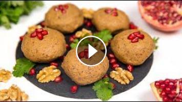 Все ингредиенты за исключением зерен граната перемалываем в блендере до однородной массы. Формируем шарики. Украшаем гранатом. Быстрая грузинская закуска на праздничный стол готова!