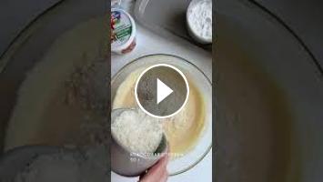 3️⃣ Разделите желтки и белки. В миске смешайте кокосовую рикотту с желтками, сахаром, и ванильным сахаром с корицей. Добавьте кокосовую стружку и крахмал. Тщательно перемешайте венчиком.