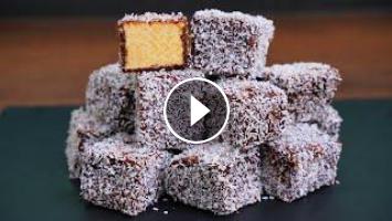 9. Корж разрезать на 16 ломтиков, каждый ломтик обмокнуть в глазури и обвалять в кокосовой стружке. Поставить в холодильник на 15 минут.
