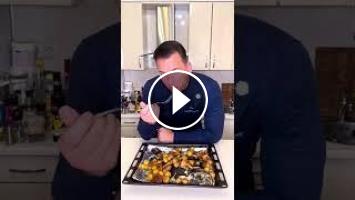 Камбалу отправляем в жарочный шкаф при температуре180гр на 30минут.Отдельно на сковороде жарим мини картофель до золотистого цвета с добавлением чеснока и белые грибы заранее отваренные(я использовал мороженные грибы).Когда наша рыба готова на нее выкладываем готовый гарнир, приятного аппетита.