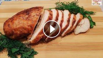 Куриное филе, запеченное в двух соусах в духовке, получается очень нежным, ароматным и вкусным, Прекрасно подходит для бутербродов и в качестве мясной нарезки, отличная замена колбасе. Полный рецепт приготовления этого блюда вы можете прочесть на нашем сайте http://zateyka.com.ua/kurinoe-file-zapechennoe-v-dvuh-sousah-v-duhovke-video/