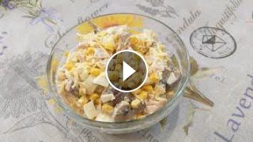 Очень вкусный салат с курицей и грибами. Рецепт приготовления.