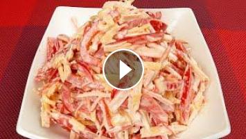 #салаты_рецепты #салат #салат_с_крабовыми_палочками #салат_с_помидорами #популярный_салат