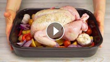 Подробный рецепт - https://www.vsegdavkusno.ru/recipes/kurica-s-ovoshchami-zapechennaya-v-duhovke