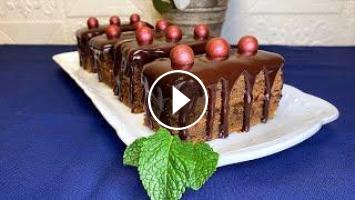 Нарезать охлажденный торт на порционные пирожные, поставить на решетку и покрыть каждое пирожное остывшим ганашем. Убрать в холодильник на 5-6 часов или на ночь.