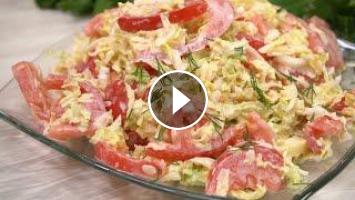 Салат «Ежедневный» из пекинской капусты и помидора. Это очень вкусный салат на каждый день, покажу 2 варианта заправки, выбор за Вами.