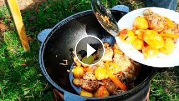 Одно из самых простых блюд для приготовления в казане на костре. Подходит для тех, кто только начинает овладевать приготовлением блюд в казане. Я тоже не являюсь специалистов в этом деле, только учусь. Поэтому и начиная с простых блюд. Вообще пища приготовленная в казане на костре, это всегда очень вкусно. Дым который крутит вокруг казана, так или иначе попадает и в сам казан. Тем самым пропитывает еду которая готовиться в казане. Поэтому еда приготовленная в казане на костре получается с дымком!