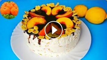 Торт "Блаженство" без выпечки, без духовки. Десерт из творога с персиками желейный Пальчики оближешь