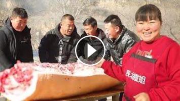 【陕北霞姐】霞姐家s年猪,400多斤大土猪8个壮汉收拾了半天,炖满满一大锅鲜猪肉,猛香了!